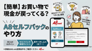 お得生活 【簡単】お買い物で現金が戻ってくる?A8セルフバックのやり方 A8.netの「セルフバック」なら、自分で商品を買ったりサービスに申し込むだけで報酬がもらえます。ネットショッピングをさらにお得にする手順を、初心者さん向けにやさしく解説します。 2026.01.12 お得生活ポイ活